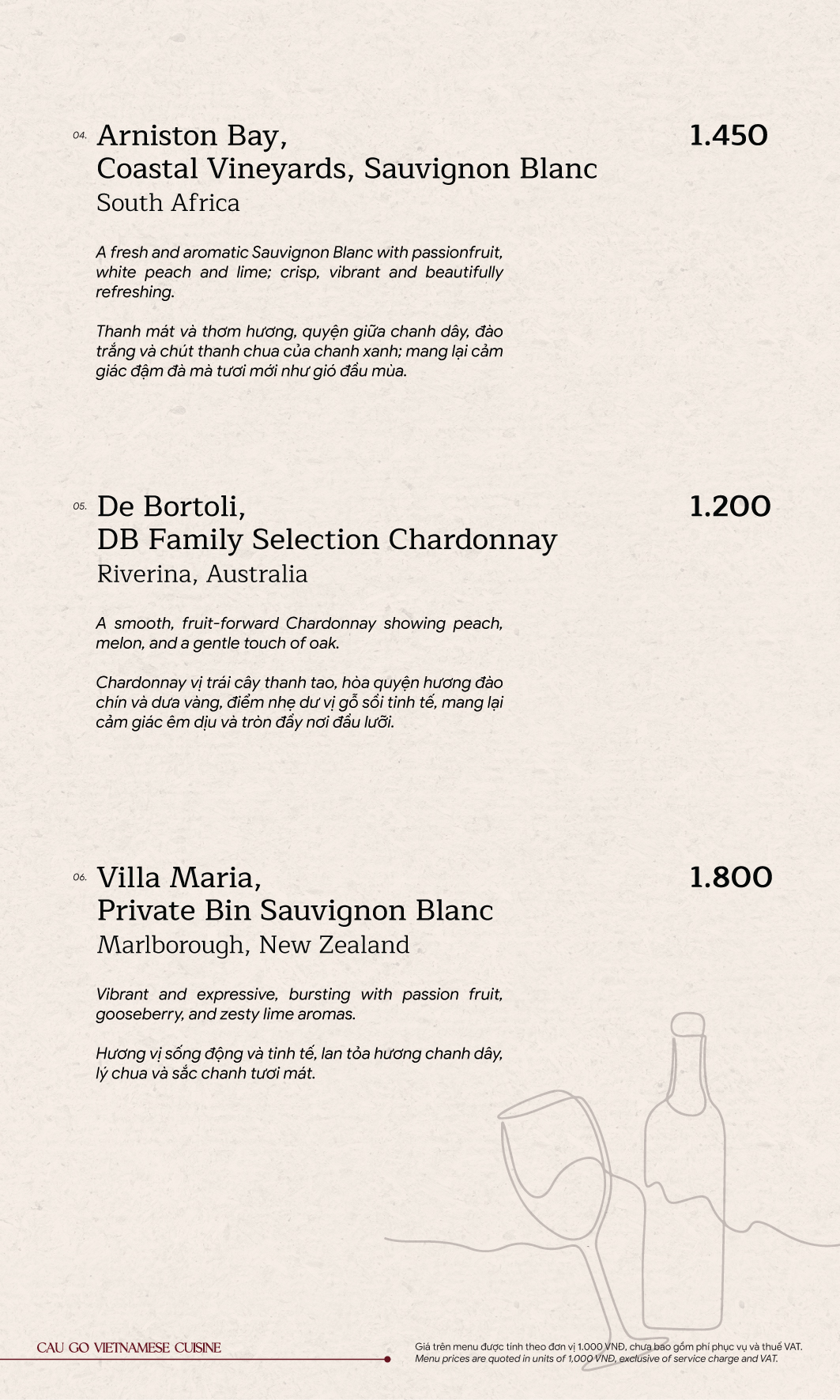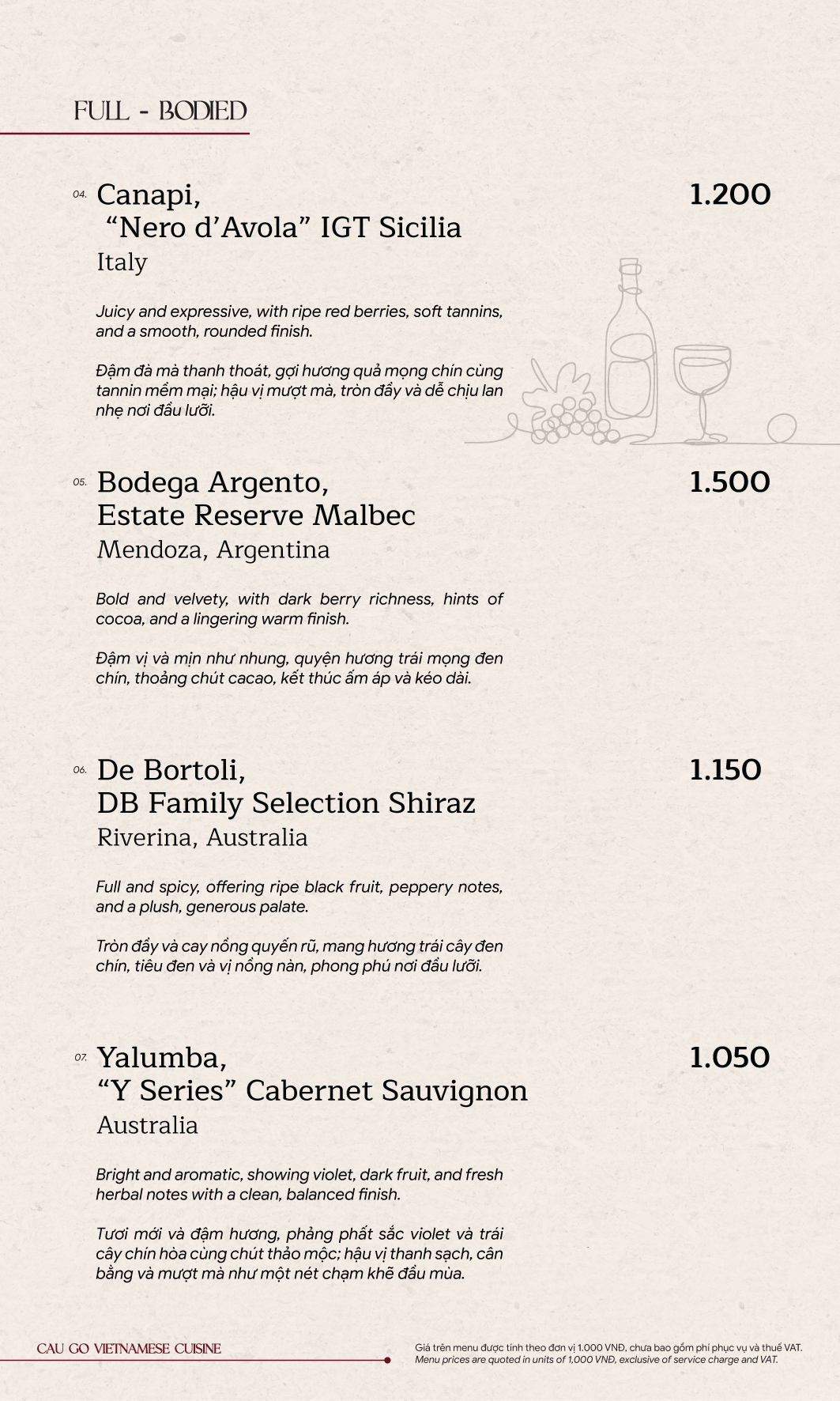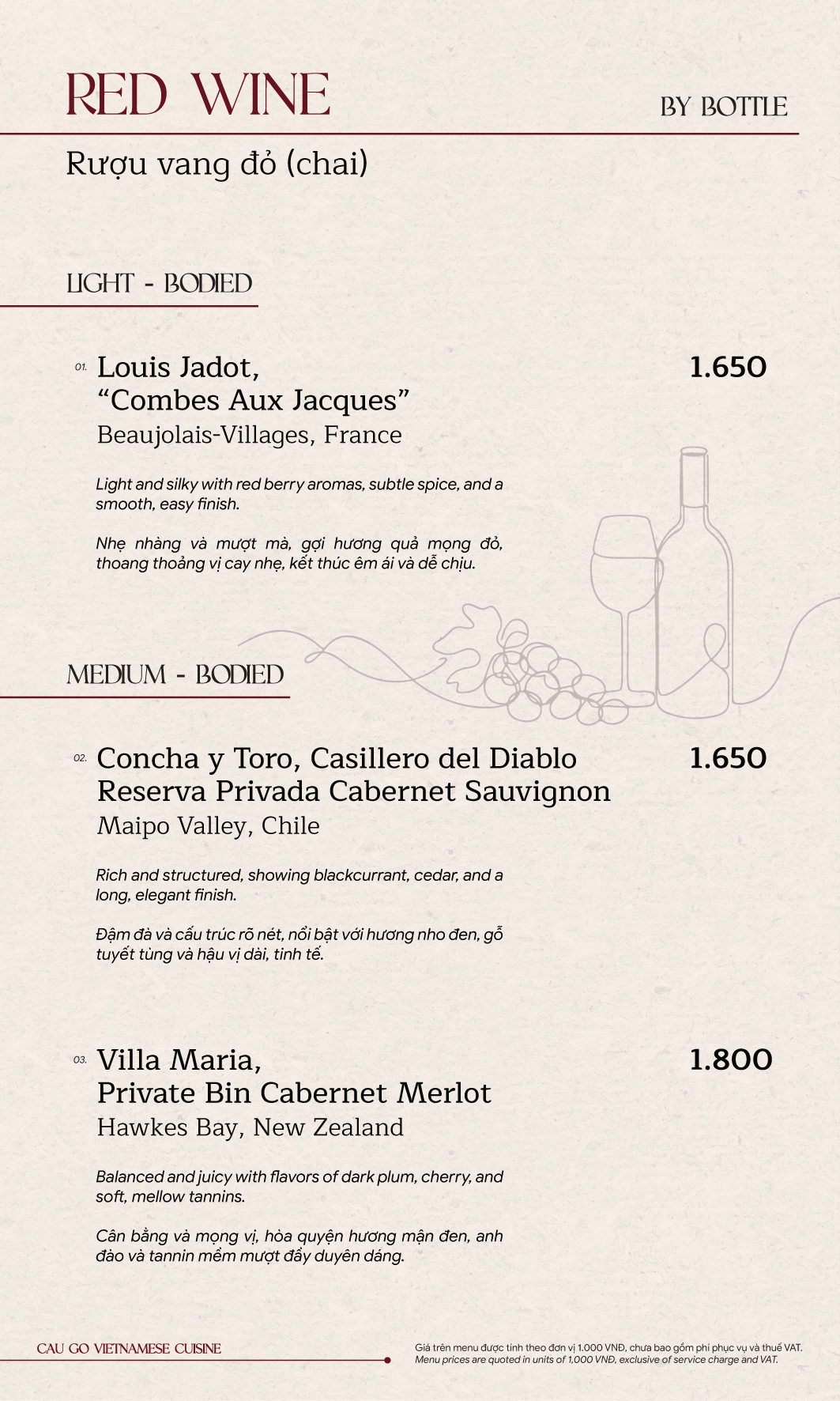 WINE MENU – CAU GO VIETNAMESE CUISINE